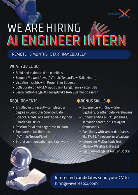 Ready to snag that AI engineer intern remote position? Let’s break down how to make it happen. First, polish your resume and online presence . Highlight any relevant projects, coursework, or previous internships. Quantify your achievements whenever possible (e.g., ‘improved model accuracy by 15%’). Make sure your LinkedIn profile is up-to-date and showcases your skills and interests in AI. A personal website or GitHub profile with your projects is a massive plus – it’s your digital portfolio! Tailor your applications . Don’t just send out generic applications. Read the job description carefully and customize your resume and cover letter to match the specific requirements and company values. Show them you’ve done your homework and are genuinely interested in their specific work. Network, network, network! Reach out to people working in AI, attend virtual conferences or webinars, and join online communities. Many opportunities are found through connections. Don’t be afraid to send a polite message on LinkedIn to someone whose work you admire, asking for advice or insights. Prepare for technical interviews . Expect questions on programming (especially Python), machine learning concepts, algorithms, and potentially system design. Practice coding problems on platforms like LeetCode or HackerRank. Brush up on your math and statistics fundamentals. Showcase your passion through projects . If you don’t have formal experience, build your own AI projects! This could be anything from a simple image classifier to a text generation model. Document your process and results on GitHub. This demonstrates initiative and practical skills far better than just listing coursework. Be persistent and don’t get discouraged . The job market can be competitive, especially for popular roles like AI internships. Rejection is part of the process. Learn from each interview, refine your approach, and keep applying. Many companies offer remote AI internships, so your reach is global. Keep honing your skills, building your portfolio, and reaching out. Your dream AI engineer intern remote role is out there waiting for you to discover it. Keep learning, keep building, and keep applying – you’ve got this! The key is to present yourself as a motivated, capable, and eager-to-learn individual who can contribute positively to their team, even from a distance. Good luck!