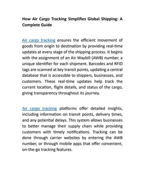 Hey guys! Ever wondered how that package you ordered from overseas makes its way to your doorstep? Or maybe you’re a business owner shipping goods across the globe and need to keep tabs on your precious cargo? Well, buckle up because we’re diving deep into the world of air cargo tracking ! This comprehensive guide will break down everything you need to know, from the basics of air cargo to the nitty-gritty of tracking your shipments like a pro.