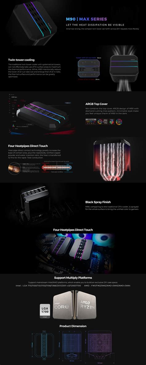 One of the biggest headaches in PC building can be compatibility, but the Alseye MAX M90’s compatibility is usually a strong point. Alseye designs their coolers to be versatile, supporting a wide array of modern CPU sockets from both Intel and AMD. This means whether you’re running the latest Intel Core processors on an LGA 1700 or 1200 socket, or a powerful AMD Ryzen CPU on an AM4 or AM5 socket, the MAX M90 should have you covered. The mounting hardware included in the box is typically comprehensive, with separate brackets and hardware for each major socket type. This broad support is absolutely essential for a cooler that aims for the high-performance market, as it allows builders to use it across different platforms and upgrade paths without needing a new cooler. However, it’s always wise to double-check the exact specifications on Alseye’s website or the product packaging to confirm support for your specific motherboard socket. Beyond the CPU socket itself, there’s another compatibility consideration: RAM and case clearance. High-performance air coolers, especially dual-tower models like the MAX M90, can be quite large. This means they might physically interfere with tall RAM modules (often called ‘heatspreaders’ or ‘g.skill trident style’) in the slots closest to the CPU socket. Some coolers include options to offset the fan or use a slimmer fan on one side to alleviate this. Similarly, the cooler’s height needs to fit within your PC case. Check the maximum CPU cooler height specification for your case and compare it to the dimensions of the MAX M90. Ensuring socket and clearance compatibility before purchasing will save you a lot of frustration down the line and guarantee that your investment works seamlessly with your chosen components.