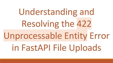 Hey there, fellow developers! If you’ve been working with FastAPI on the backend and Axios on the frontend, chances are you’ve encountered the infamous 422 Unprocessable Entity error. This particular status code can feel like hitting a brick wall, especially when you’re sure your data looks right but your application still refuses to cooperate. It’s one of those errors that just screams, “ Something’s wrong with your request, but not in a simple way! ” Don’t worry, guys, you’re not alone in this struggle. Many developers find themselves scratching their heads over this specific issue. The 422 Unprocessable Entity error isn’t about server-side crashes (like a 500 error) or authorization failures (like a 401 403 ). Instead, it’s a polite, albeit firm, way for your FastAPI backend to tell your Axios frontend, “ Hey, I received your request, I understand its syntax, but the data within it just doesn’t make sense to me according to my rules. ” It means the request body, while syntactically correct (e.g., valid JSON), failed one or more validation checks on the server side. In the world of FastAPI , this almost always points to an issue with how your data aligns with your Pydantic models. This article is going to be your ultimate guide to understanding, debugging, and ultimately solving those stubborn 422 errors. We’ll dive deep into what causes them, how to spot them using both FastAPI ’s detailed error messages and Axios ’s robust error handling, and most importantly, how to prevent them from cropping up in your applications in the first place. We’re talking about practical tips, real-world examples, and a friendly, conversational tone to make sure you walk away feeling confident and empowered. So, if you’re ready to bid farewell to those frustrating 422 Unprocessable Entity messages and build more robust and user-friendly applications, let’s roll up our sleeves and get started!