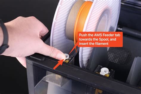 4. Loading Filament: Open the AMS unit and load your desired filaments into the designated slots. Follow the instructions in the user manual for proper filament loading. Pay attention to the recommended filament types for the AMS.