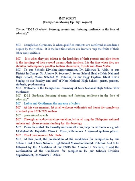 So, you’ve poured your heart and soul into crafting the perfect informal MC script , and now it’s showtime, guys! But here’s the thing: a great script is only half the battle. The delivery is where the magic truly happens. Think of your script as the sheet music, but you’re the musician who needs to bring it to life with passion and skill. One of the most crucial tips for delivering your informal MC script is to be yourself . Seriously, authenticity is your superpower. People connect with genuine personalities, not robots reading lines. Let your natural humor, your quirks, and your energy shine through. If you’re naturally witty, use it. If you’re more laid-back and warm, lean into that. The audience will sense your comfort level, and it will make them more comfortable too. Don’t try to be someone you’re not; just be the best version of you hosting this event. Master your tone and pace . An informal script calls for a conversational tone, not a lecture. Speak clearly, but don’t rush. Vary your pace to keep things interesting – slow down for emphasis, speed up slightly for exciting announcements, and use pauses effectively to let points sink in or build anticipation. Imagine you’re chatting with friends; that’s the vibe you want to capture. Make eye contact . This is a game-changer, people! When you make eye contact with individuals in the audience, you create a personal connection. Scan the room, engage with different sections, and make people feel seen and acknowledged. It transforms a one-way broadcast into a two-way interaction, even if you’re doing most of the talking. It shows confidence and makes your delivery much more impactful. Use body language effectively . Your posture, gestures, and facial expressions all contribute to your delivery. Stand tall, smile genuinely, and use open gestures to appear approachable and energetic. Avoid fidgeting or looking down at your script constantly. If you need to refer to your script, do it discreetly and then immediately reconnect with the audience. Your non-verbal cues should reinforce the positive, engaging message of your script. Handle mistakes gracefully . Oops! Did you stumble over a word? Forget a name? It happens to the best of us, guys. The key is not to panic. Acknowledge it with a smile, perhaps a lighthearted comment like, ‘Well, that came out a bit jumbled, didn’t it?’ and then smoothly correct yourself and move on. The audience is usually forgiving, and how you recover can actually endear you to them even more. Don’t let a small flub derail your entire performance. Interact and improvise (when appropriate) . While you have a script, don’t be afraid to go slightly off-script if the situation calls for it. If a funny moment happens in the audience, acknowledge it. If a speaker goes a little over time, you might need to adjust your next segment. These moments of improvisation, when handled well, can make the event feel spontaneous and highly engaging. Always keep the overall flow and purpose of the event in mind, though. Project confidence . Even if you’re feeling a bit nervous inside, project confidence. This comes from preparation – knowing your script inside out (but not memorized word-for-word!), understanding the event schedule, and trusting your ability to connect with people. Your confidence will reassure the audience and keep them engaged. Listen and adapt . Pay attention to the audience’s energy. Are they engaged? Are they getting restless? Are they laughing at your jokes? Use these cues to adjust your delivery. If a particular segment is a huge hit, you might linger a bit longer. If something isn’t landing, you might need to move on more quickly. Being a responsive MC is key to keeping the atmosphere just right. Ultimately, delivering your informal MC script is about creating an experience. It’s about connection, energy, and making everyone feel like they’re part of something special. So, practice your delivery, embrace your personality, and go out there and own that stage!