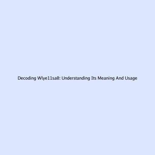 Decoding wlye11sa0: Understanding Its Meaning and Usage