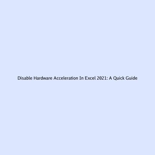 Disable Hardware Acceleration In Excel 2021: A Quick Guide