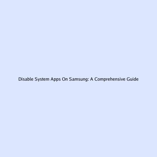 Disable System Apps On Samsung: A Comprehensive Guide