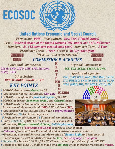 ECOSOC’s work is structured around a high-level segment, a functional commission segment, and regional coordination segments. The high-level segment is where top officials and leaders discuss major global trends and challenges, often setting the agenda for international cooperation. The functional commissions are groups that focus on specific areas like population, status of women, or crime prevention. And the regional commissions help tailor UN efforts to the specific needs of different parts of the world. This multi-faceted approach ensures that ECOSOC is both broad in its scope and specific in its actions. It’s about making sure that global goals are not just abstract ideals but are also translated into practical strategies that work on the ground, taking into account the diverse realities of different regions and communities. The council’s ability to bring together governments, international organizations, NGOs, and the private sector makes it a unique and powerful platform for driving progress on the Sustainable Development Goals (SDGs). Without this kind of coordinated effort, achieving these ambitious goals would be nearly impossible. It’s a testament to the idea that collaboration and shared responsibility are key to tackling the complex challenges of our time. The sheer scale of its mandate highlights the interconnectedness of global issues and the need for a unified approach to problem-solving.