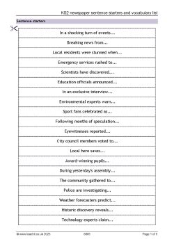 Engaging Sentence Starters For Newspaper Articles