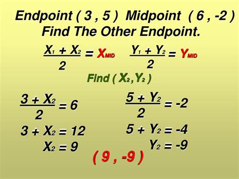 So, the coordinates of our missing endpoint \((x_2, y_2)\) are simply \((2x_m - x_1, 2y_m - y_1)\) . This is the core concept, guys. Once you’ve got these two rearranged formulas down, finding the other endpoint becomes a straightforward application of plugging in your known values. We’ll walk through some examples in a bit to really solidify this, but the foundation is all about understanding the midpoint formula and how to manipulate it algebraically. It’s like having a secret code to unlock any endpoint mystery!