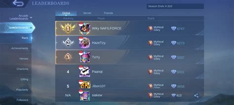 Each player on the leaderboard is listed with their in-game name and ID. This allows you to easily identify them and, if you want, add them as a friend or follow their gameplay. Keep an eye out for familiar names or players who are known for their exceptional skills.