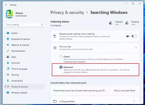 • Enhanced: This is the big one. It indexes your entire PC, including OneDrive cloud locations if you have them set up. If you want the fastest and most comprehensive search results, select ‘Enhanced’ . You’ll see a message like ‘Windows is indexing your PC’ or similar, indicating it’s working. It might take a while the first time, especially if you have a lot of files, so be patient!