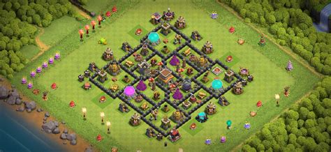 A hybrid base aims to balance resource protection with trophy preservation. The Base Hall is usually placed towards the center, but not completely inaccessible. Key defensive structures such as the Wizard Tower and Air Defense are positioned to cover a wide area, protecting both the Base Hall and valuable resource storages. The Mortar should be placed centrally to provide splash damage coverage throughout the base. Place traps strategically to catch unsuspecting attackers off guard. Spring Traps near defenses that Giants target can be incredibly effective.