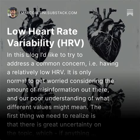 • Early Detection of Health Issues: In some cases, a consistently low HRV can be a sign of underlying health issues. By tracking your HRV, you may be able to detect these issues early and seek medical attention. For example, a consistently low HRV can be a sign of heart problems or other cardiovascular issues. Early detection and treatment can improve outcomes and prevent more serious health problems.