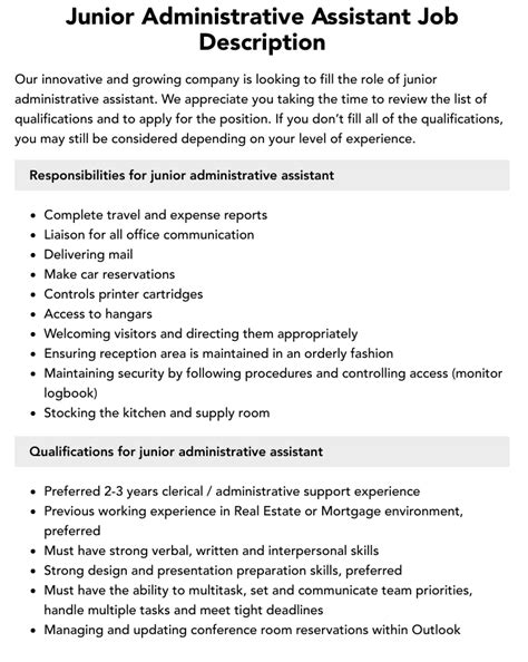So, what exactly is the day-to-day life of a Junior Administrative Assistant like? While the specific tasks can vary wildly depending on the company and the industry, there are some core duties that most junior assistants can expect to handle. Think of them as the backbone of the office , ensuring that everything runs smoothly behind the scenes. One of the most common tasks involves managing correspondence . This means you’ll be the gatekeeper for emails, phone calls, and even physical mail. You’ll be responsible for sorting, prioritizing, and distributing incoming communications, as well as drafting responses for routine inquiries. It’s a big responsibility because you’re often the first point of contact for clients, partners, or even potential employees, so making a good impression is key. Another significant part of the job is scheduling and coordination . This includes booking meetings, managing calendars for executives or teams, and sometimes even arranging travel. You’ll be juggling multiple schedules, ensuring no clashes occur, and sending out timely reminders. This requires a sharp eye for detail and excellent time management skills. Document management is also a huge piece of the puzzle. You’ll likely be responsible for filing, organizing, and maintaining physical and digital records. This could involve creating new filing systems, updating databases, or retrieving documents when needed. Accuracy and confidentiality are paramount here. Furthermore, general office upkeep is part of the gig. This might sound simple, but it’s vital for a productive work environment. Tasks could include ordering office supplies, ensuring the reception area is tidy, managing the mailroom, or even assisting with basic IT troubleshooting. Basically, you’re the person who keeps the office humming. Finally, supporting senior staff is a defining characteristic of the role. This means being ready to assist managers, executives, or other team members with various tasks as they arise. This could range from preparing presentations and reports to running errands or conducting basic research. The key here is being proactive, adaptable, and always willing to lend a hand. It’s a role that demands versatility and a willingness to learn, but it’s incredibly rewarding when you see the direct impact of your work on the smooth operation of the office. You’re not just doing tasks; you’re contributing to the overall success of the business by keeping essential administrative functions in check, allowing others to focus on their core responsibilities. It’s a position that truly allows you to grow your understanding of how an organization functions from the ground up.