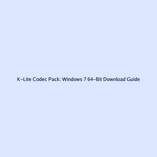 K-Lite Codec Pack: Windows 7 64-Bit Download Guide