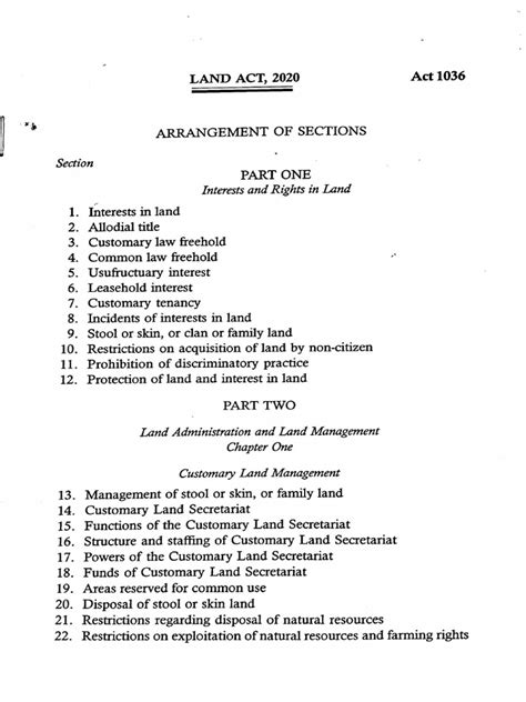 • Land Ownership: This part clarifies who can own land (citizens, companies, etc.) and the types of ownership (freehold, leasehold, etc.). It’s all about defining who has the right to own and use land, and under what conditions. The Land Act 2020 typically outlines the various types of land tenure, such as freehold, leasehold, and customary tenure. Freehold tenure grants the owner the most extensive rights over the land, allowing them to use, sell, or transfer it as they see fit, subject to certain regulations. Leasehold tenure, on the other hand, grants the lessee the right to use the land for a specified period, after which the land reverts to the lessor. Customary tenure is based on traditional laws and customs and is often associated with indigenous communities. The Act also specifies the eligibility criteria for land ownership, which may vary depending on whether the owner is an individual, a corporation, or a foreign entity. For instance, there may be restrictions on foreign ownership of certain types of land, such as agricultural land or land near strategic locations. The Act also addresses issues related to land registration, which is the process of recording land ownership in a public registry. Registration provides legal certainty and protects the rights of landowners. The Land Act 2020 typically establishes a system for land registration, outlining the procedures for registering land, the documents required, and the fees involved. It also addresses issues related to land surveying and mapping, which are essential for accurately identifying and delineating land parcels. The Act also includes provisions for resolving disputes related to land ownership, such as boundary disputes or conflicting claims of ownership. These provisions may involve mediation, arbitration, or litigation, depending on the nature of the dispute and the preferences of the parties involved. Overall, the provisions on land ownership in the Land Act 2020 are designed to provide clarity, security, and fairness in land transactions and land administration. They aim to balance the rights of landowners with the public interest, ensuring that land is used in a sustainable and equitable manner. Understanding these provisions is crucial for anyone involved in land transactions, development, or conservation.