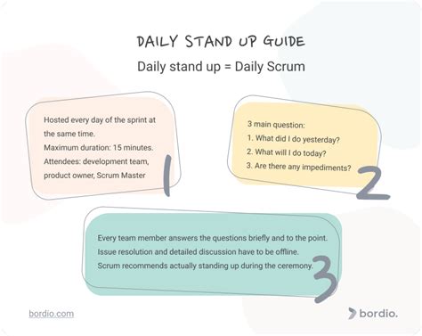 Alright, let’s break down what actually makes a daily scrum stand-up work wonders. It’s not just about showing up and saying a few words; there are some key elements that separate a great stand-up from a mediocre one. First off, timeboxing is king . The Scrum Guide explicitly states that the Daily Scrum is a 15-minute event. Seriously, stick to it! This isn’t a deep dive or a problem-solving session; it’s a quick sync. If a longer discussion is needed, it should be taken offline after the stand-up with the relevant people. This discipline ensures that the meeting stays focused and efficient, respecting everyone’s time. Secondly, the three questions (though the Scrum Guide now emphasizes inspecting progress toward the Sprint Goal and adapting the plan) are a classic and still useful framework for many: What did I do yesterday that helped the Development Team meet the Sprint Goal? What will I do today to help the Development Team meet the Sprint Goal? Do I see any impediment that prevents me or the Development Team from meeting the Sprint Goal? These questions encourage reflection on progress and proactive identification of blockers. Some teams adapt these to be more about the work rather than what I did , focusing on how tasks are progressing and what needs to happen to move them forward. The crucial part is ensuring that the focus remains on the Sprint Goal. Attendance is also vital, but with a twist. It’s primarily for the Developers (the core team doing the work). While Scrum Masters and Product Owners often attend, their roles are different. The Scrum Master ensures the event takes place and is positive, productive, and kept within the timebox. The Product Owner can attend to listen and clarify, but they shouldn’t direct the team’s work during the stand-up. Anyone else who wants to observe can do so, but they should not disrupt the meeting. Finally, location and consistency matter. Holding the stand-up at the same time and place every day creates a predictable routine, making it easier for everyone to remember and attend. Whether it’s a physical location or a virtual meeting room, consistency builds habit. The goal is to create a shared understanding of progress, foster collaboration, and identify impediments quickly so the team can keep moving forward effectively. By focusing on these core components, your daily scrums can transform from a chore into a powerful engine for team success.