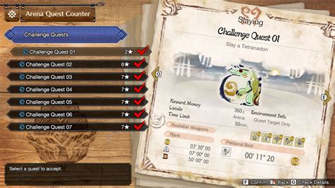 Alright, let’s get down to the brass tacks and really define what these Monster Hunter World Challenge Quests are all about. Unlike your standard expedition or optional quest where you bring your painstakingly crafted gear, these challenge quests throw a massive curveball: fixed loadouts . That’s right, hunters, you don’t get to pick your favorite fully-augmented weapon or your custom-tailored armor set with all the perfect decorations. Instead, the game hands you a specific weapon, a predetermined armor set, and a set of items, forcing you to adapt and make the most of what you’ve got. This crucial difference is precisely what elevates them beyond regular hunts and firmly establishes them as a true test of skill . Each challenge quest pits you against one or more monsters, usually within the confines of the Special Arena or Arena , and the primary goal is not just to defeat the monster, but to do so as quickly and efficiently as possible to achieve a high ranking. These ranks, typically C, B, A, and the elusive S, are determined by your completion time, and getting that S-rank often requires near-perfect execution. Many of these quests also introduce unique rules or monster combinations that you won’t find in the main game, adding another layer of complexity and novelty. For instance, you might be tasked with taking down two ferocious monsters simultaneously, or facing off against an elder dragon with a weapon type you rarely use. These MHW Arena Quests are often rotated through event schedules , meaning some may only be available for a limited time, adding a sense of urgency and exclusivity to the rewards they offer. Beyond the thrill of the hunt itself, successfully clearing these challenges contributes to your Hunter Rank and can unlock special items or equipment blueprints, making them an essential part of the endgame experience for many dedicated players. So, if you’re looking for a way to truly gauge your Monster Hunter prowess and prove your mastery over every weapon in the arsenal, the Challenge Quests are where the real action is at, offering a fresh perspective on familiar foes and forcing you to evolve your combat strategies.