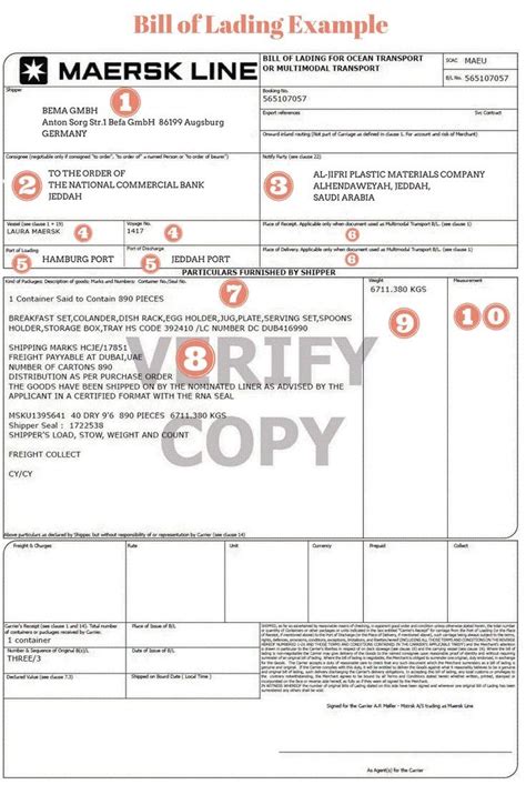 Alright, let’s get into the nitty-gritty and break down what kind of information you can find on a Master Bill of Lading . This document is packed with essential details about the shipment, so knowing what to look for is important. Here’s a rundown of the key components: The Shipper : This is the party who’s sending the goods. Their name and address are clearly stated. The Consignee : This is the party who will receive the goods. Their name and address are included. The Notify Party : Sometimes, there’s a third party who needs to be notified when the shipment arrives. Their details are also listed. The Vessel Name and Voyage Number : This indicates the specific ship and voyage that is transporting the goods. The Port of Loading and Discharge : These are the ports where the goods are loaded and unloaded. The Description of Goods : A detailed description of the cargo being shipped. This is super important for customs purposes. The Quantity and Weight : The total quantity and weight of the goods are listed, often including the number of packages. The Freight and Charges : Details about the shipping costs and any additional charges. The Bill of Lading Number : This unique number is used to track the shipment.