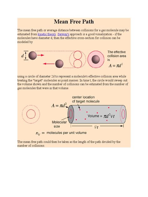 Now, for those of you who love a good equation, let’s get into how we actually calculate mean free path . It’s not some mystical guess; there’s a formula for it! For a simple gas at a given temperature and pressure, the mean free path (often represented by the Greek letter lambda, \(\lambda\) ) can be approximated using the following formula: \(\lambda = \frac{kT}{\sqrt{2}\pi d^2 P}\) . Let’s break this down, guys. ‘k’ is the Boltzmann constant, a fundamental constant that relates the average kinetic energy of particles in a gas with the absolute temperature of the gas. ’T’ is the absolute temperature in Kelvin. ’d’ is the effective diameter of the particles (think of them as tiny billiard balls). The \(\pi d^2\) part represents the collision cross-section – basically, the area a particle presents for a collision. The \(\sqrt{2}\) factor comes from considering the relative motion of the colliding particles. Finally, ‘P’ is the pressure of the gas. So, as you can see from the formula, if you increase the temperature (T), the mean free path ( \(\lambda\) ) tends to increase, meaning particles travel further between collisions. If you increase the pressure (P) or the particle diameter (d), the mean free path ( \(\lambda\) ) tends to decrease, because collisions become more frequent. It’s important to remember that this is a simplified model, often referred to as the hard-sphere model, and it assumes all particles are identical and their interactions are purely elastic collisions. In reality, molecules have complex shapes and interactions, but this formula gives us a really good ballpark estimate. For more complex scenarios, like different types of particles or non-ideal gases, the calculations can get a bit more involved, but the fundamental principles remain the same. This calculation is super useful for engineers designing vacuum systems or predicting gas behavior in industrial processes.