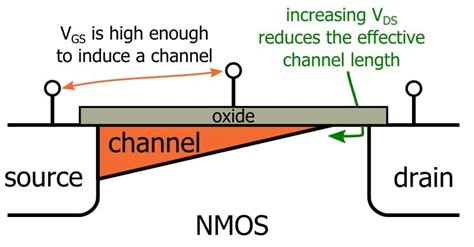 Alright, let’s get our hands dirty with the nitty-gritty physics behind Channel Length Modulation . To truly grasp CLM, we need to revisit the concept of the MOSFET saturation region and the pinch-off phenomenon . When a MOSFET is in saturation, the voltage at the drain end of the channel, relative to the source, reaches a critical point known as the pinch-off voltage . At this point, the effective channel width at the drain end narrows down dramatically, almost pinching off the channel. However, it doesn’t completely cut off the current; instead, electrons (for n-MOS) are swept across this high-field depletion region towards the drain. Now, here’s where CLM comes into play: as we continue to increase the drain-source voltage (Vds) beyond the saturation point, the voltage difference between the drain and the channel region at the pinch-off point also increases. This larger voltage difference causes the depletion region extending from the drain-substrate junction to expand even further into the channel. Think of it like this: the depletion region is a zone devoid of free charge carriers, and as it expands, it literally eats into the effective conductive channel from the drain side.