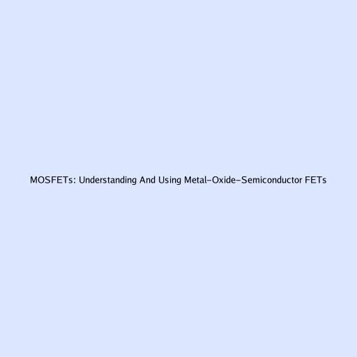 MOSFETs: Understanding And Using Metal-Oxide-Semiconductor FETs