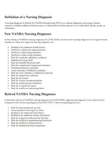 - Nursing textbooks: Many nursing textbooks have entire chapters dedicated to nursing diagnoses.
