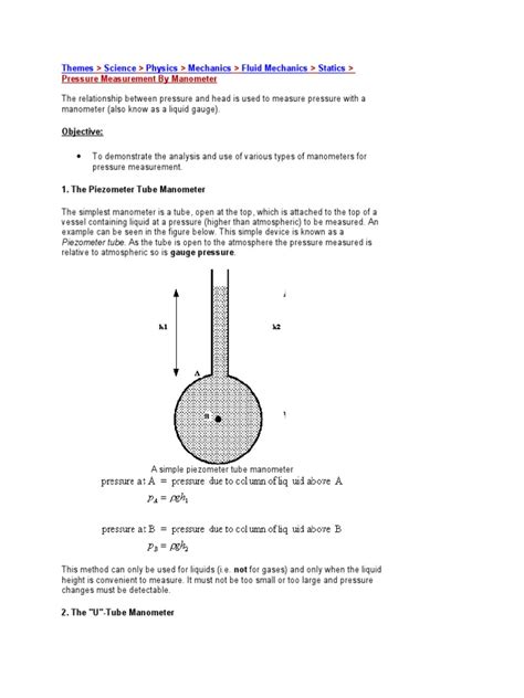 So, what exactly is a piezometer? At its core, a piezometer is a device used to measure the piezometric head , which is essentially the hydraulic head or the level of groundwater. Think of it as a fancy well designed to tell you how high the water is in the ground at a specific point. Now, when we talk about a piezometer water manometer , we’re narrowing down the type of instrument used to measure this pressure. A manometer is a U-shaped tube filled with a liquid, usually water or mercury, and it works on the principle of balancing fluid columns. The difference in the height of the liquid in the two arms of the U-tube directly indicates the pressure difference . In the context of a piezometer, the manometer is used to gauge the pressure exerted by the groundwater.