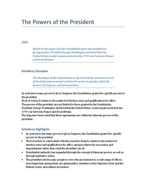 First up, let’s talk about where these powers actually come from. The U.S. Constitution is the OG rulebook, guys, and it lays out a bunch of expressed powers for the president. These are the powers that are written down plain as day in the document. Think of Article II of the Constitution as the president’s job description. It grants powers like being the Commander-in-Chief of the armed forces, the power to grant reprieves and pardons, the power to make treaties (with the Senate’s approval, of course!), the power to appoint ambassadors, judges, and other officers, and the power to convene or adjourn Congress. These are concrete authorities that the president can legally exercise. But here’s where it gets a little more nuanced: the Constitution also implies certain powers. Implied powers aren’t written down word-for-word, but they are considered necessary and proper to carry out the expressed powers. For example, the Constitution doesn’t explicitly say the president can fire executive branch officials, but it’s generally understood that the power to appoint implies the power to remove. This concept of implied powers really opens up the door for presidents to adapt and respond to changing times and unforeseen challenges. It’s this blend of explicit rights and necessary interpretations that gives the presidency its teeth. So, while the founders might not have envisioned every single thing a president would do, they created a framework that allowed the office to grow. It’s a bit like owning a house – you have the deed (expressed powers), but you also have the ability to make renovations and improvements (implied powers) as long as they don’t violate building codes (the Constitution). It’s a crucial distinction to grasp because it explains why the presidency isn’t static; it’s dynamic and evolves with each administration.