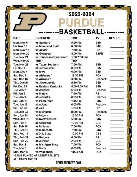 Now, before we get to the printable magic, it’s super important to know where to get the official Purdue basketball schedule . You don’t want to be looking at some random, outdated list, do you? The best place to start is always the source: Purdue Athletics official website . This is where you’ll find the most up-to-date information directly from the university. They usually have a dedicated basketball section where the schedule is prominently displayed. You can typically view it online, and often, they’ll provide a link or a downloadable PDF version specifically designed for printing. Look for sections like “Schedules,” “Game Day,” or “Tickets.” These pages are usually updated regularly, especially as game times are confirmed or any changes occur. Remember, college basketball schedules can be fluid, with TV broadcast times dictating when some games actually tip off. The official site will have the latest on these specifics, including broadcast networks (like BTN, ESPN, CBS, etc.) and exact tip-off times. Once you find the official schedule online, keep an eye out for a button or link that says “Print Schedule” or “Download PDF.” This is your golden ticket to that glorious printable version. If, by chance, you can’t find a direct printable link, don’t sweat it! Most modern browsers allow you to “Print” a webpage, and you can often adjust the settings to get a clean, readable output. Just make sure you select the right page range or content to avoid printing a whole bunch of unrelated stuff. Always double-check the date on the schedule you find to ensure it’s for the current season – usually the 2023-2024 season for the upcoming campaign. Getting your info from the official Purdue Athletics site guarantees you’re following the real deal, avoiding any fan-made versions that might have errors. It’s the most reliable way to stay informed about when and where to watch your beloved Boilermakers hit the court.