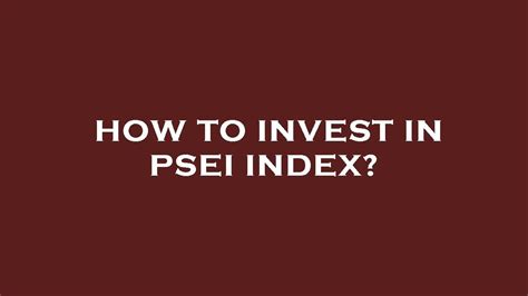- PSEi is the main index for the Philippine stock market. It gives you a general idea of how the market is performing.