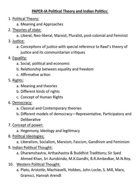 Alright guys, let’s kick things off with Paper I of the PSIR syllabus. This paper is broadly divided into two main parts: Political Theory and Indian Politics . It’s all about understanding the foundational concepts of political thought, governance, and how these manifest in the Indian context. When you’re preparing for the detailed PSIR syllabus for Paper I, remember that it’s not just about memorizing names and dates; it’s about critical analysis and understanding the interplay of ideas and realities . You need to be able to connect abstract theories with concrete examples from Indian political history and contemporary scenarios. Think of it as building a strong theoretical framework and then applying it to understand one of the most vibrant and complex political systems in the world – India. We’ll delve into the thinkers, the ideologies, and the institutions that shape our political landscape. So, let’s get started with the nitty-gritty, shall we?