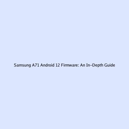 Samsung A71 Android 12 Firmware: An In-Depth Guide