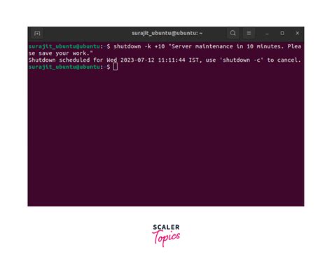 command is particularly versatile, allowing you to schedule the shutdown for a specific time and send a warning message to users. For example,