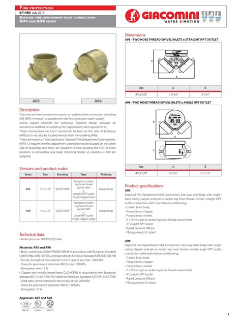 When we talk about Siamese connection size , we’re usually referring to the diameter of the inlets and the outlet. The most common sizes you’ll encounter, especially in North American firefighting, are based on standard hose diameters. For instance, you’ll frequently see Siamese connections designed to accept two 2.5-inch diameter fire hoses. The outlets on these connections are typically designed to fit standard fire department connections (FDCs) or standpipe systems, which are often 4 inches or larger in diameter. However, this isn’t a one-size-fits-all situation, guys. Different regions, different fire departments, and different applications might have their own specific standards. Some might use smaller hoses, like 1.5-inch or 2-inch, especially for smaller departments or specific industrial uses. Conversely, in high-flow scenarios or for large municipal systems, you might encounter connections designed for even larger hoses or multiple hose inputs. The National Fire Protection Association (NFPA) sets many of these standards in the US, providing guidelines for the design, installation, and testing of fire protection equipment. These standards ensure a certain level of interoperability and performance across different jurisdictions and equipment manufacturers. When looking at a Siamese connection, you’ll typically see the size specified by the diameter of the individual hose connections and sometimes the discharge outlet . For example, a common configuration might be labeled as ‘2.5” x 2.5” x 4”’, meaning it accepts two 2.5-inch hoses and has a 4-inch outlet. It’s crucial to understand these markings. Beyond the physical dimensions, there are also considerations for thread types. Fire hose threads (like NST/NH or Storz) are standardized within regions, and your Siamese connection needs to have compatible threads on its inlets and outlets to ensure a secure and leak-free connection. So, while 2.5-inch inlets are super common, always double-check the specific standards and markings for the equipment you’re using. Getting this Siamese connection size and thread type right is key for seamless operation.