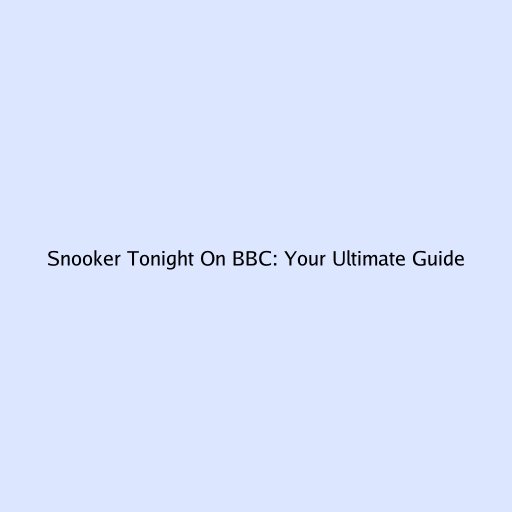 Snooker Tonight on BBC: Your Ultimate Guide