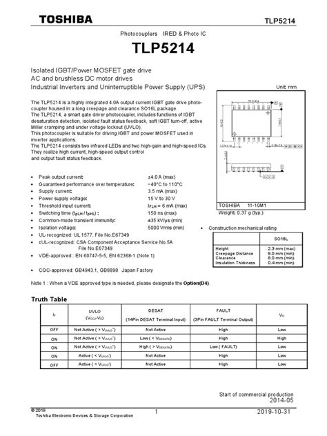 Alright, let’s get down to business with the TLP5214 datasheet . When you first open it up, it might look a bit intimidating with all the tables and graphs. But don’t worry, we’re going to demystify it for you. At its core, the TLP5214 is a high-speed photocoupler. What does that mean for you? It means it can switch signals really, really fast, which is crucial for applications like digital logic, power supplies, and communication interfaces where timing is everything. The ‘TLP’ prefix usually signifies a Toshiba product, and the ‘5214’ is the specific model number. This particular optocoupler features a gallium arsenide infrared emitting diode (IR LED) on the input side, which is coupled to a phototransistor on the output side. This pairing is pretty standard for optocouplers, but the specifics of how they’re implemented in the TLP5214 give it its unique performance characteristics. We’ll be looking at key parameters like current transfer ratio (CTR), switching speed, isolation voltage, and operating temperature range. Understanding these will help you pick the right optocoupler for your specific needs and ensure your circuit operates reliably and safely. So, grab your coffee, and let’s unpack this datasheet piece by piece!