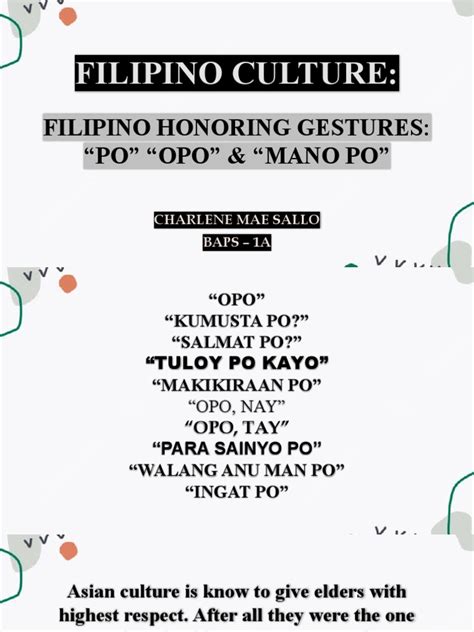 While “ po ” is undoubtedly the star of respectful communication in the Philippine language, especially Tagalog, it’s important to remember that it’s part of a broader system of honorifics and gestures that underscore Filipino politeness. To truly deepen your understanding and enhance your interactions, guys, let’s expand our respectful vocabulary beyond just “po.” First up, we have “ Opo ” and “ Ho .” We touched on “ Opo ” earlier – it’s the respectful way to say “yes.” Similarly, “ Oho ” serves the same purpose and is often interchangeable with “ Opo ,” though “ Opo ” is generally more common and widely used across different regions and contexts. When you’re directly answering an elder or superior, always opt for “ Opo ” over a simple “ Oo .” Beyond verbal cues, there’s the beautiful traditional gesture called “ Mano Po .” This is a physical act of showing respect, where a younger person takes the hand of an elder and presses it to their forehead. When doing this, the younger person typically says “ Mano po ,” which literally translates to “(Your) hand, please” but signifies a request for blessing and respect. It’s a heartwarming tradition, often seen during greetings or when seeking an elder’s blessing. Then there are familial honorifics that extend beyond immediate family. Filipinos widely use “ Ate ” for an older sister or any older female acquaintance you respect, and “ Kuya ” for an older brother or any older male acquaintance. So, you might address your older female friend as “ Ate Maria ” and your older male friend as “ Kuya John ,” even if you’re not actually related. This practice fosters a sense of extended family and shows respect for those who are slightly older. Similarly, “ Tito ” and “ Tita ” are used for uncles and aunts, but they are also commonly extended to older family friends or even parents of your friends, signifying a respectful, familial bond. Calling someone “ Tito ” or “ Tita ” is a wonderful way to show warmth and respect. Beyond specific words and gestures, the tone of voice and body language also play crucial roles. Speaking softly, avoiding direct eye contact (especially with very traditional elders), and maintaining a calm demeanor all contribute to conveying respect. A raised voice or an overly casual posture might be perceived as impolite. So, remember that “po” is a vital component, but it’s just one piece of a larger, intricate puzzle of Filipino politeness. By embracing these various honorifics, gestures, and nuances in communication, you’ll not only speak the language but truly live the culture, making your interactions with Filipinos incredibly rich and meaningful. It’s all about showing genuine appreciation and respect, guys, and these tools will help you do just that!