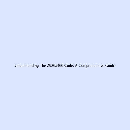 Understanding the 2920a400 Code: A Comprehensive Guide