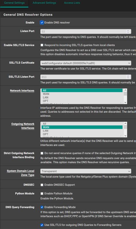 Alright, let’s get down to the nitty-gritty and walk through the setup process. Before we dive in, make sure you have access to your pfSense web interface and have a basic understanding of your network configuration. First, log into your pfSense web interface. In the top menu, go to “Services” and then click on “DNS Resolver.” This is where you’ll configure the DNS server settings. On the “General Settings” tab, you’ll see a few important options. First, ensure the “Enable DNS Resolver” checkbox is checked. This activates the DNS resolver service. Next, you can configure the “Listening Interfaces.” This specifies which network interfaces the DNS resolver should listen on. Typically, you’ll want to select “WAN” and your “LAN” interface. Also, set the “Outgoing Network Interfaces.” This is the interface that pfSense will use to connect to external DNS servers. You can choose your WAN interface here. Then, scroll down to the “Advanced Settings” section. Here, you’ll find more options for fine-tuning your DNS resolver. One important setting is “DNS Query Forwarding.” You can enable this to forward DNS queries to external DNS servers, such as Google’s DNS (8.8.8.8 and 8.8.4.4) or Cloudflare’s DNS (1.1.1.1 and 1.0.0.1). This is useful if you want to take advantage of faster or more reliable DNS servers. After configuring these settings, click “Save.” Your DNS resolver is now active and ready to handle DNS queries. To test if your DNS resolver is working correctly, you can try pinging a website from the pfSense console or from a device on your network. If the website resolves to an IP address, your DNS setup is working! Great job, guys!
