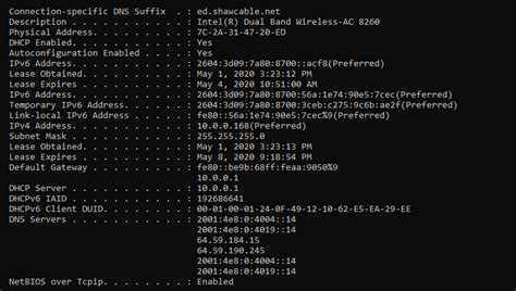 To get more detailed information, you can use the ipconfig /all command. This will display additional information such as: