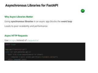 When you need to interact with asynchronous libraries – like httpx for making HTTP requests or an async database driver – you’ll simply await their results. For example, using httpx :